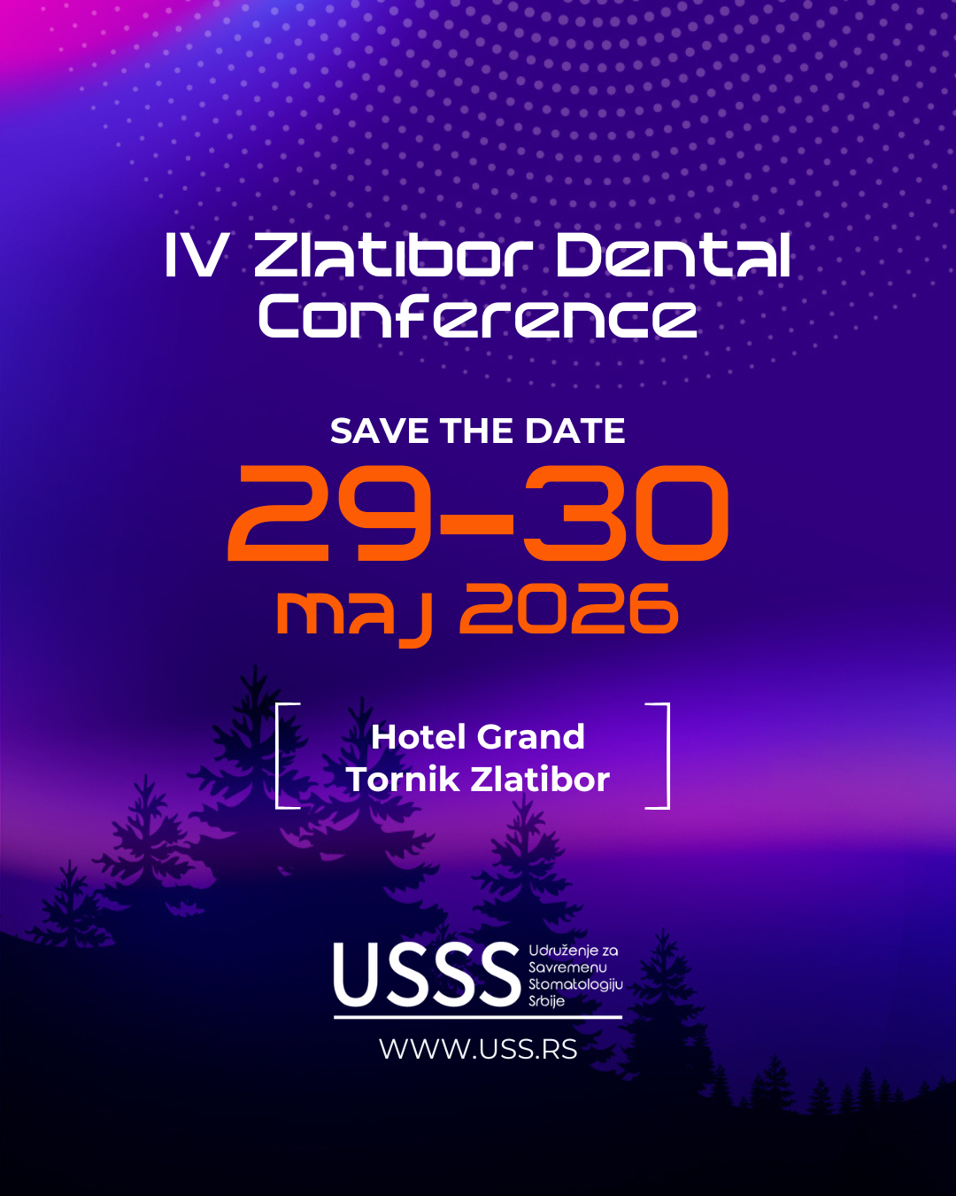 Veliko nam je zadovoljstvo da Vas obavestimo da će Udruženje za savremenu stomatologiju Srbije (USSS) organizovati III Međunarodni kongres stomatologa pod nazivom: Zlatibor Dental Conference 2025. Skup će se održati od 29. do 31. maja 2025. godine u hotelu Grand & Sky Tornik na Zlatiboru.